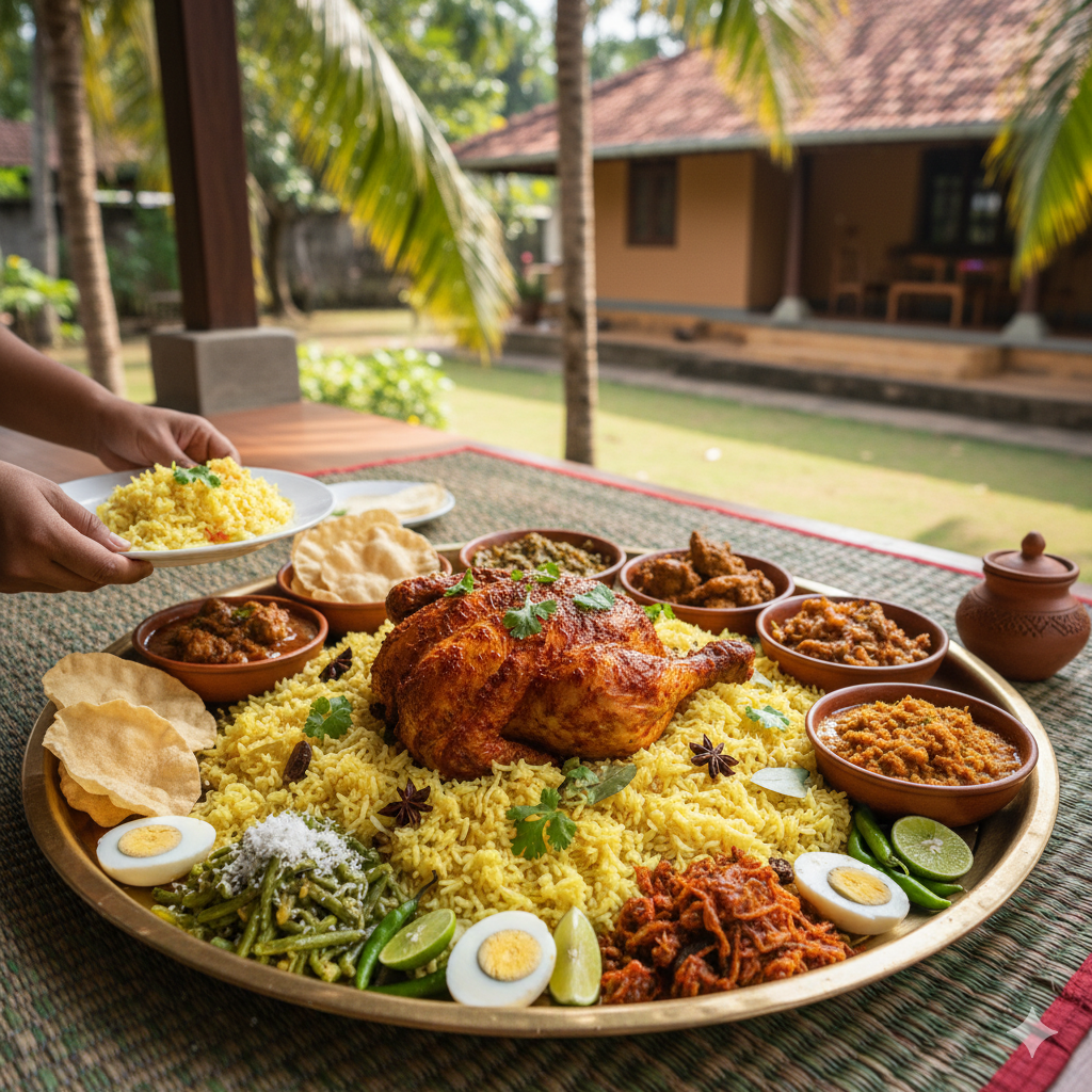 A delicious mix of rice, curries, and sides made for sharing and enjoying together.